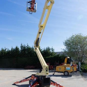 Laat je niet misleiden door zijn formaat: deze machine haalt een werkhoogte van ruim 20 meter en biedt een horizontaal bereik tot 9,7 meter. Ideaal voor toepassingen waar een combinatie van hoogte én reikwijdte vereist is, zoals bij gevelonderhoud, dakwerken, boomverzorging of industriële installaties.