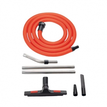 Inclusief zuigslang (5 m), 1x multi adapter (25,50 tot 38 mm), 1x stalen handgreep met luchtregelaar, 1x inox verlengbuis (0,50 m), 1x platte zuigbek (22 cm), 1x zuigmond met inzetborstel (37 cm)