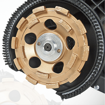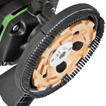 De machine kan uitgerust worden met een aansluiting voor een industriële stofzuiger, wat zorgt voor een stofvrije werkomgeving. Bijhorende diamantschijven zijn ook verkrijgbaar.
