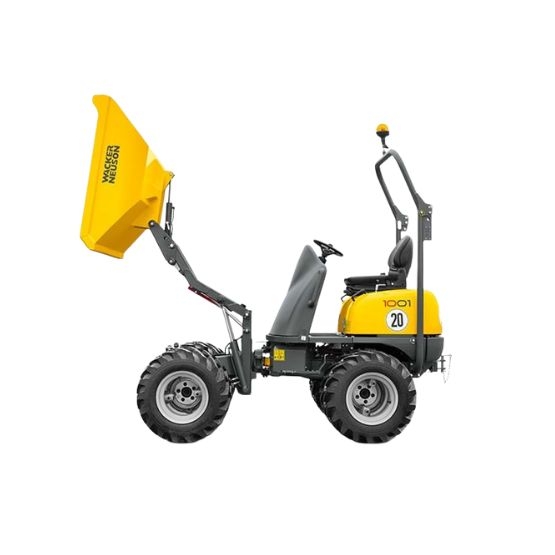 Compacte en krachtige 1 ton wieldumper huren? De Wacker Neuson 1001 is ideaal voor het transport van grond, puin en materialen op moeilijk terrein. Dankzij vierwielaandrijving, compacte afmetingen en een laadvermogen van 1000 kg is deze dumper perfect voor bouw- en renovatieprojecten.