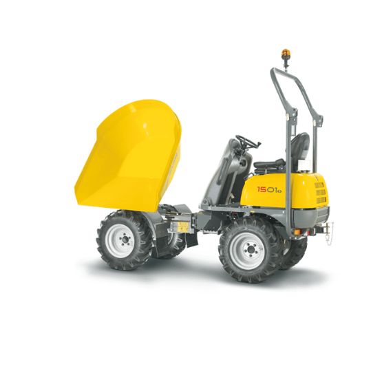 De Wacker Neuson DW15 wieldumper huren voor uw werf? Deze compacte en krachtige dumper met een laadvermogen van 1.500 kg is ideaal voor het transport van grond, puin en bouwmaterialen op moeilijk terrein. Dankzij vierwielaandrijving, een stabiel chassis en compacte afmetingen werkt u efficiënt en veilig op elke werf.