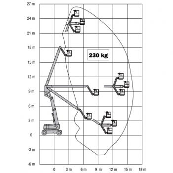 | Maximaal hefvermogen op reikwijdte | 230 kg |